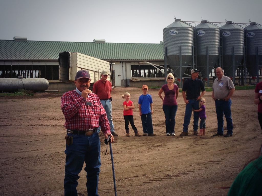First up was a hog confinement building. I didn’t venture inside because we had quite a few women on the tour and I was more than happy to let them see everything first. Below is the Roling family in the background with their three adorable kids, who did a great job showing us their jobs on the farm!