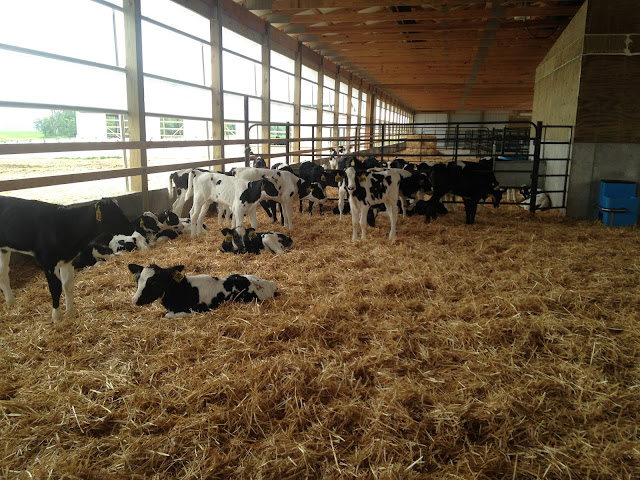 The two buildings we toured have pits under the buildings. Which mean that the manure slides through slats in the floor and is completely contained under the building. Then, once or twice a year the manure is pumped out and spread with a liquid manure spreader. This is great for manure management and because you are pumping the manure out and spreading it on your fields it also saves on fertilizer application costs. Sustainable agriculture at its finest.